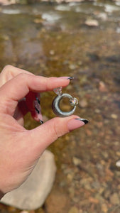 Kinetic spinning opal ball trapped between two points of the crescent. Made with second run of Molten Aura Electrum (more sparkles and darker shade). Crushed opal bail.